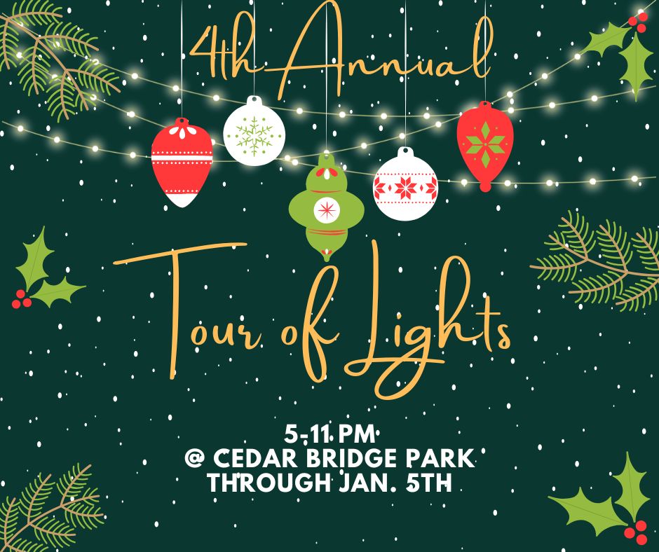 We are celebrating the season with LIGHTS! For the fourth year, Mitchell County Conservation is hosting a “Tour of Lights” display at Cedar Bridge Park, just west of Osage on Highway 9. This light display features lighted creations from local businesses, individuals, and organizations. The display will begin November 28th and shine each evening through January 5th from 5-11PM. Touring the lights is free, but any donations are always appreciated. All funds raised will support outdoor recreation in Mitchell County, helping keep our community vibrant and active! Be sure to check out the lights during your visit with Santa on December 14th! Mark your calendars and get ready to celebrate the season in style!