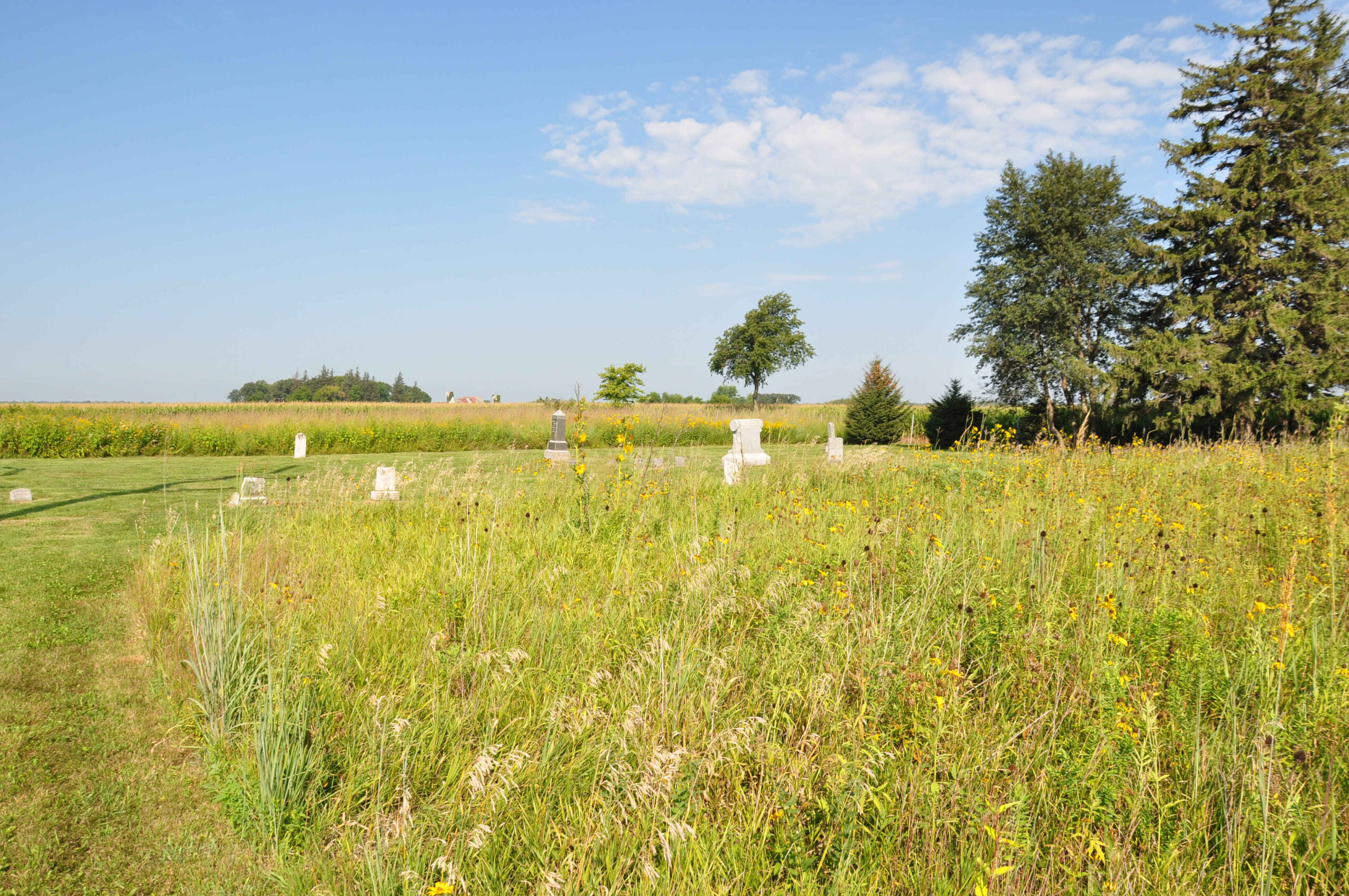 As you wander through Oak Lane Cemetery, you will be greeted by a peaceful atmosphere and a unique blend of native prairie. The cemetery has been thoughtfully planted with native prairie grasses and flowers, creating a beautiful and serene environment. During the summer months when the prairie is in full bloom, the cemetery becomes a breathtaking sight, with vibrant colors painting the landscape.