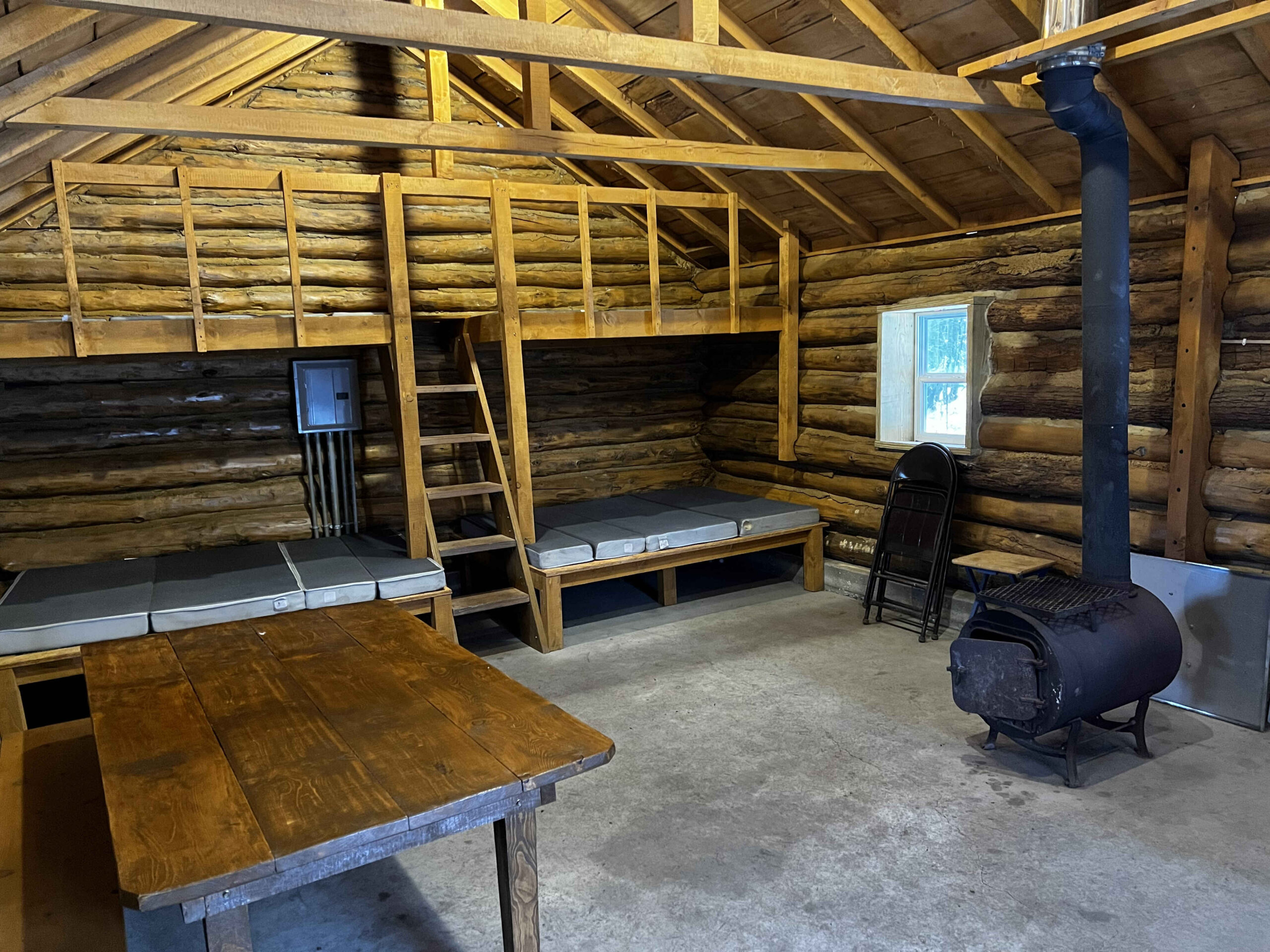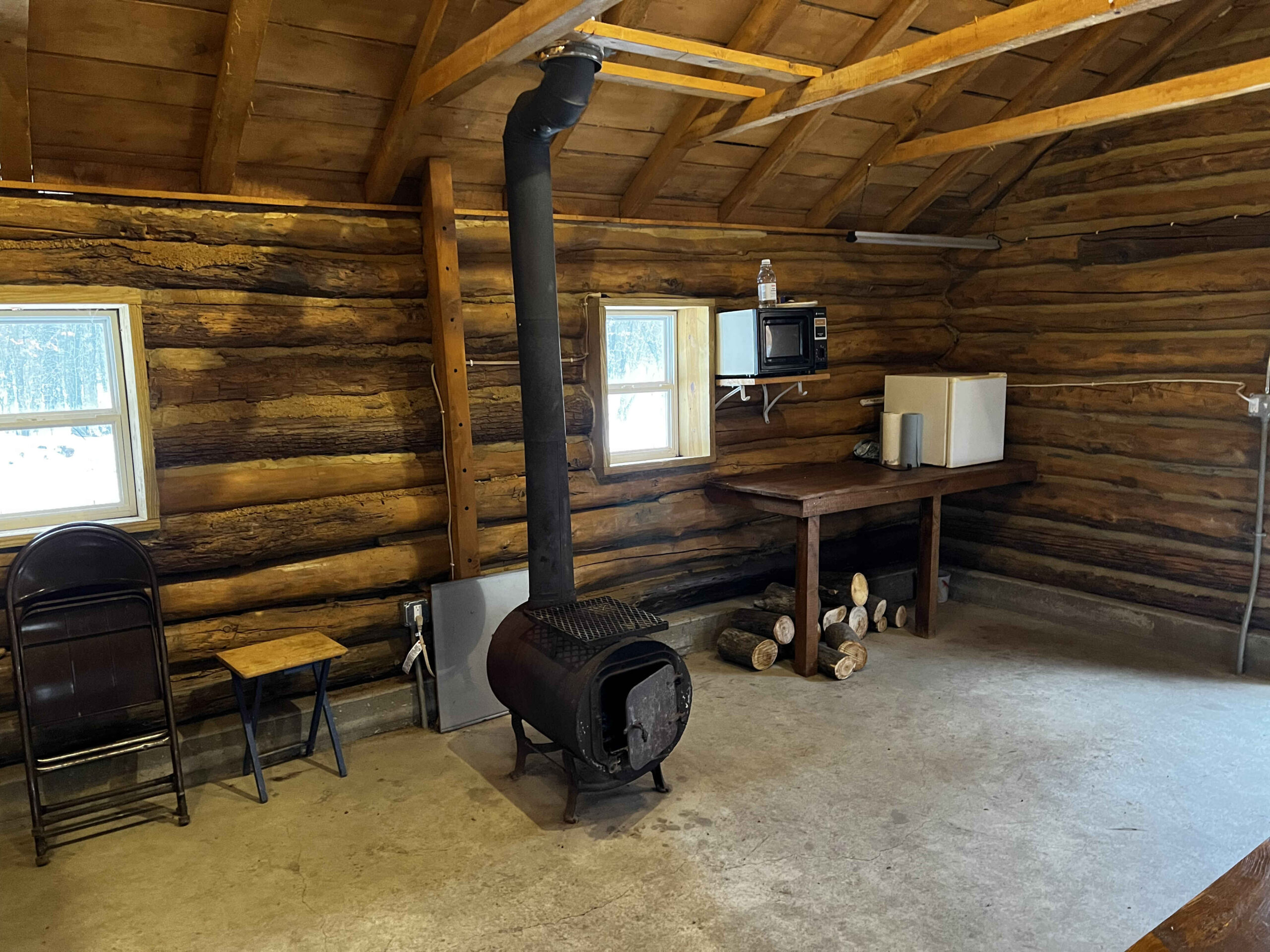 Welcome to Pinicon Alders Small Cabin, a charming rustic retreat that can comfortably accommodate up to 4 people. This cozy cabin features an open floor plan with a wood stove for heat and a small table and chairs, providing a simple and intimate setting for your stay.
